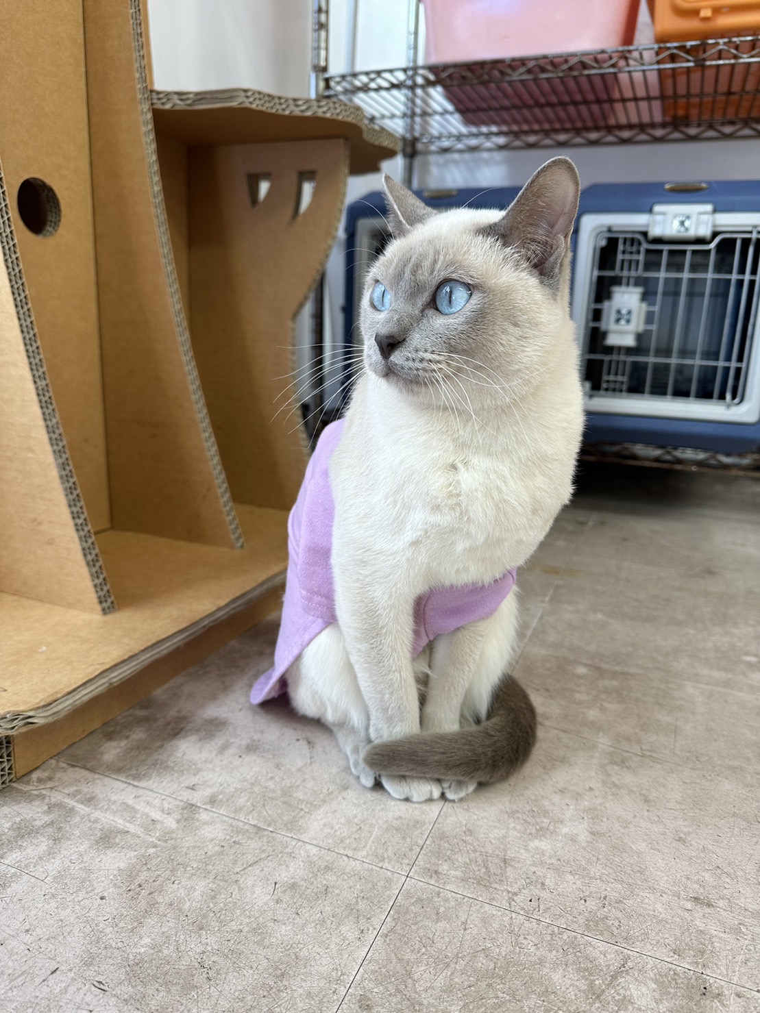 そして最後に!!斬新なお洋服の着方をしていたルル!しっかり着替えさせてあげたのですがいつの間にか自身で着替えなおしていました😂この写真を撮った後しっかりと腕を通してあげました!