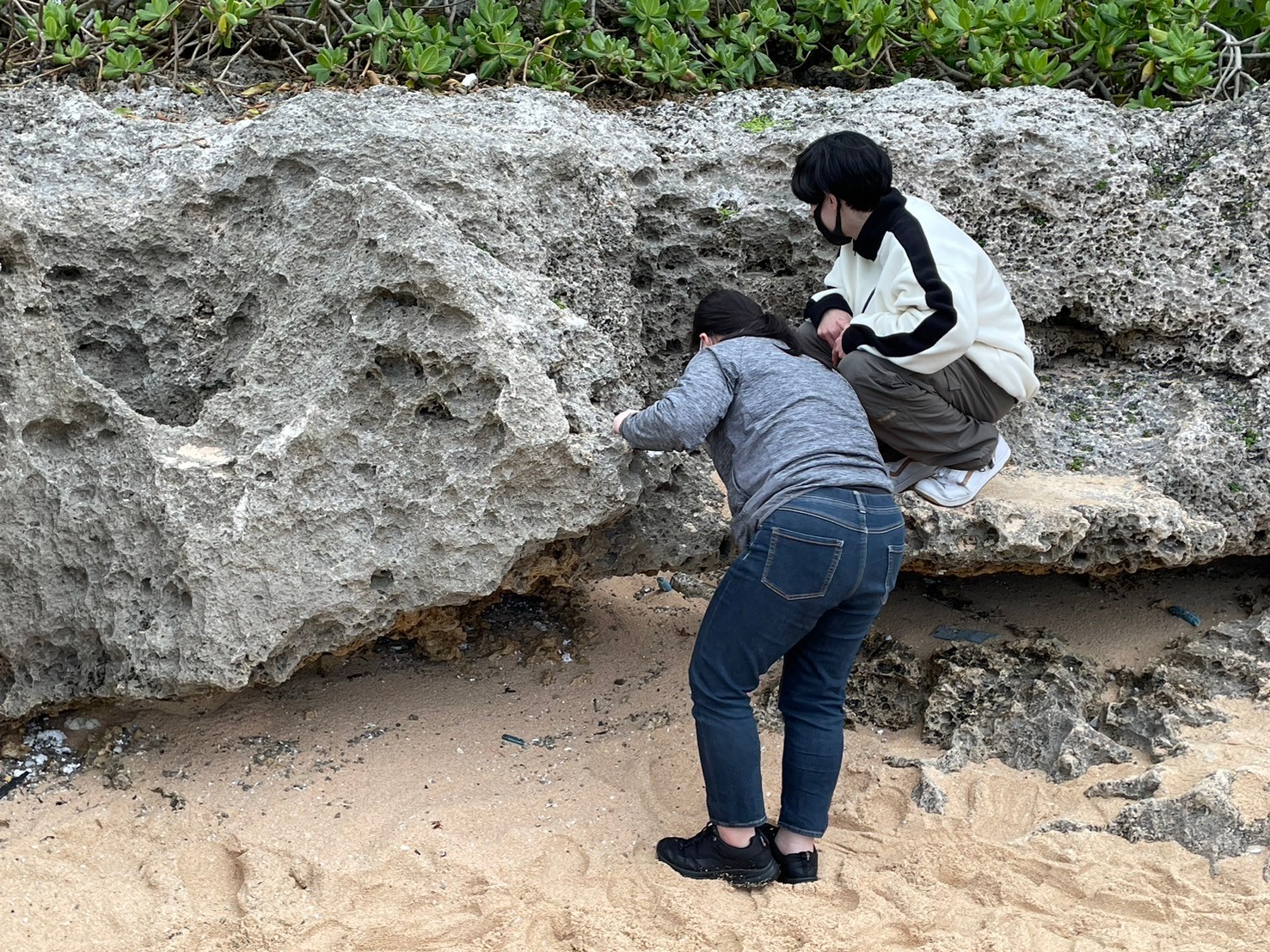 砂浜で遊んだり、写真撮影にいそしんだり、岩場で生き物探しなど