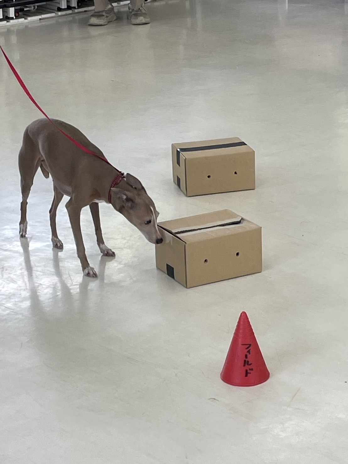 まずはベテランチェリーちゃんのサーチの様子!しっかりと鼻は箱に向かっていて慎重に嗅いでいます…