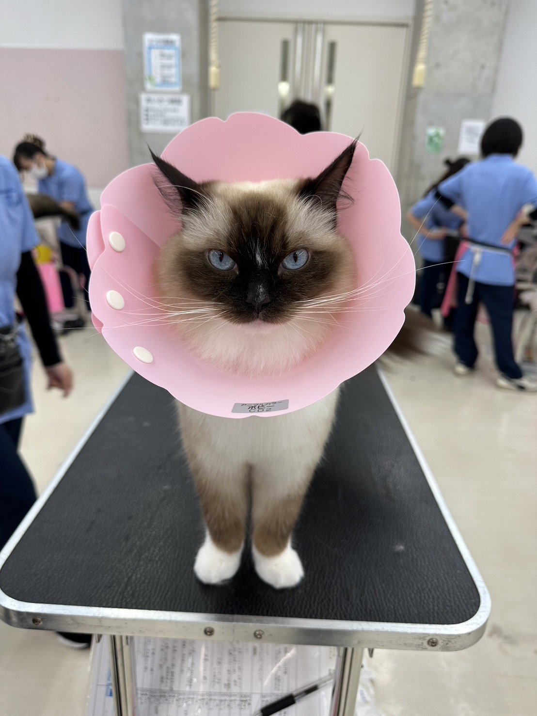 エリザベスカラーをつけて凛々しいお顔のつくしちゃん。