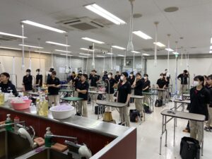 勝田👩🏻『先生たちもシャンプーのチェックをしたり、ブローのチェックをしたり大忙し💦』