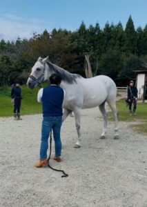 授業ではまず、「馬とどう向き合うか」という根本的な考え方について学びました。