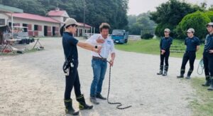 宮田先生のアドバイスのもと、馬との距離感やタイミング、姿勢を意識しながら、
