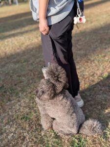 バーボンくんは、【脚側停座】の練習に励んでいました!