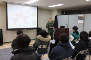 到着後は航空自衛隊の活動について学びました✏️