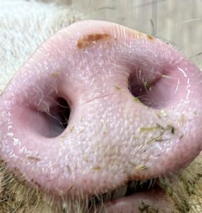 ブタは地面に埋まっているキノコや昆虫、植物の根を食べるために嗅覚が発達しました。