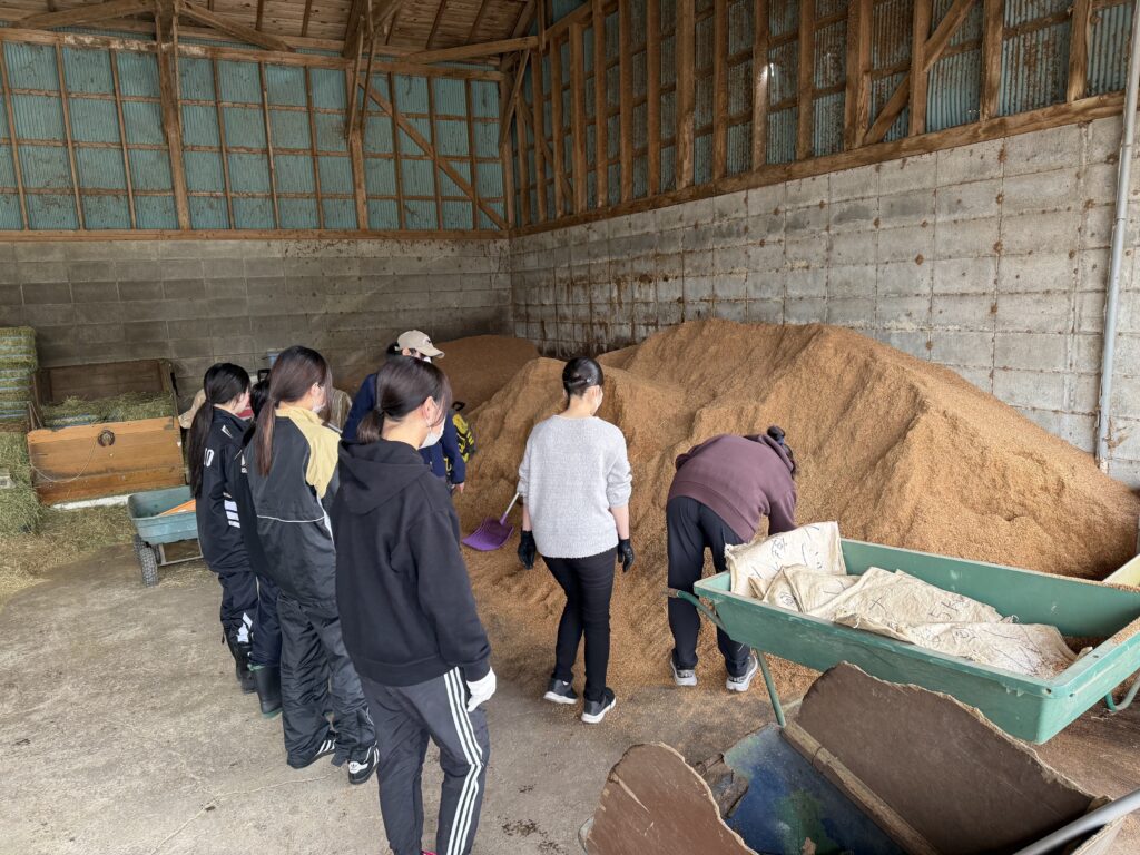 まずは馬房掃除から
