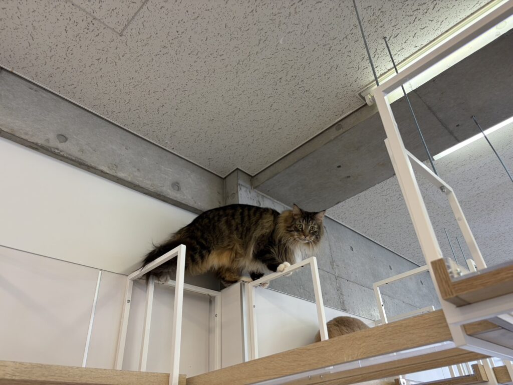 壁には猫たちが上り下りできるキャットウォークが設置されています!