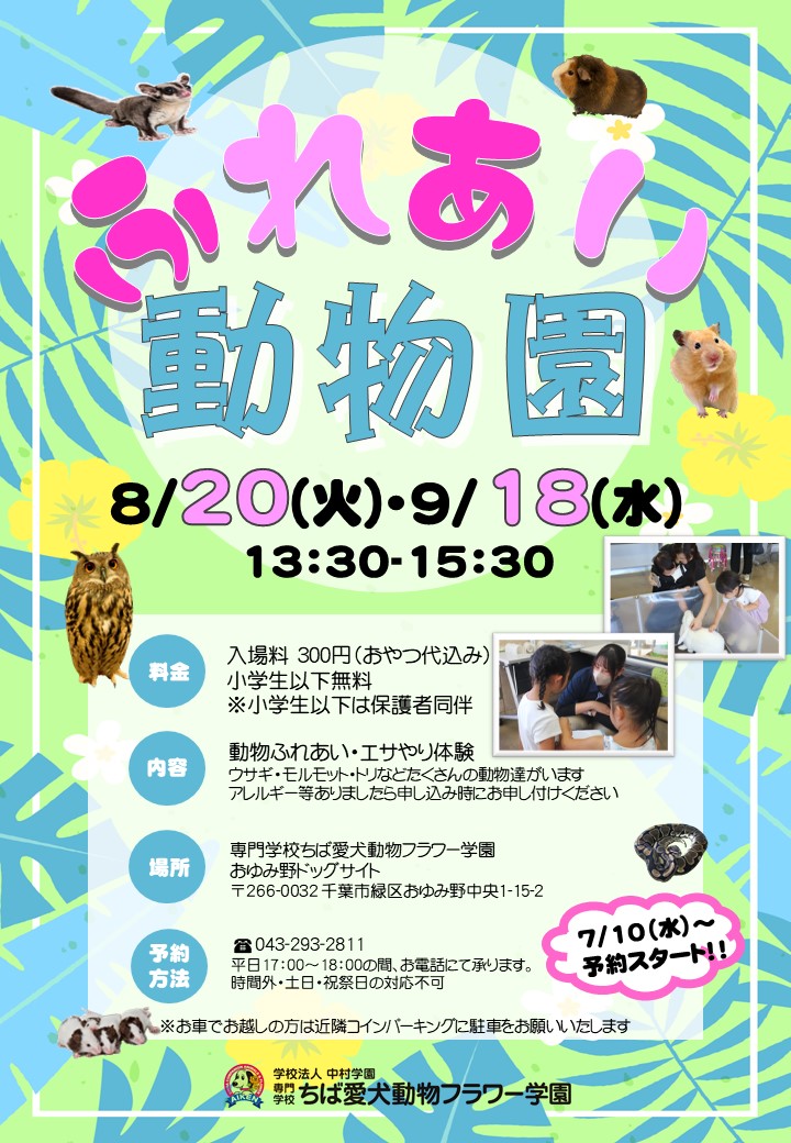 【内容】おゆみ野ドッグサイト内の小動物園見学・小動物ふれあい体験・エサやり体験